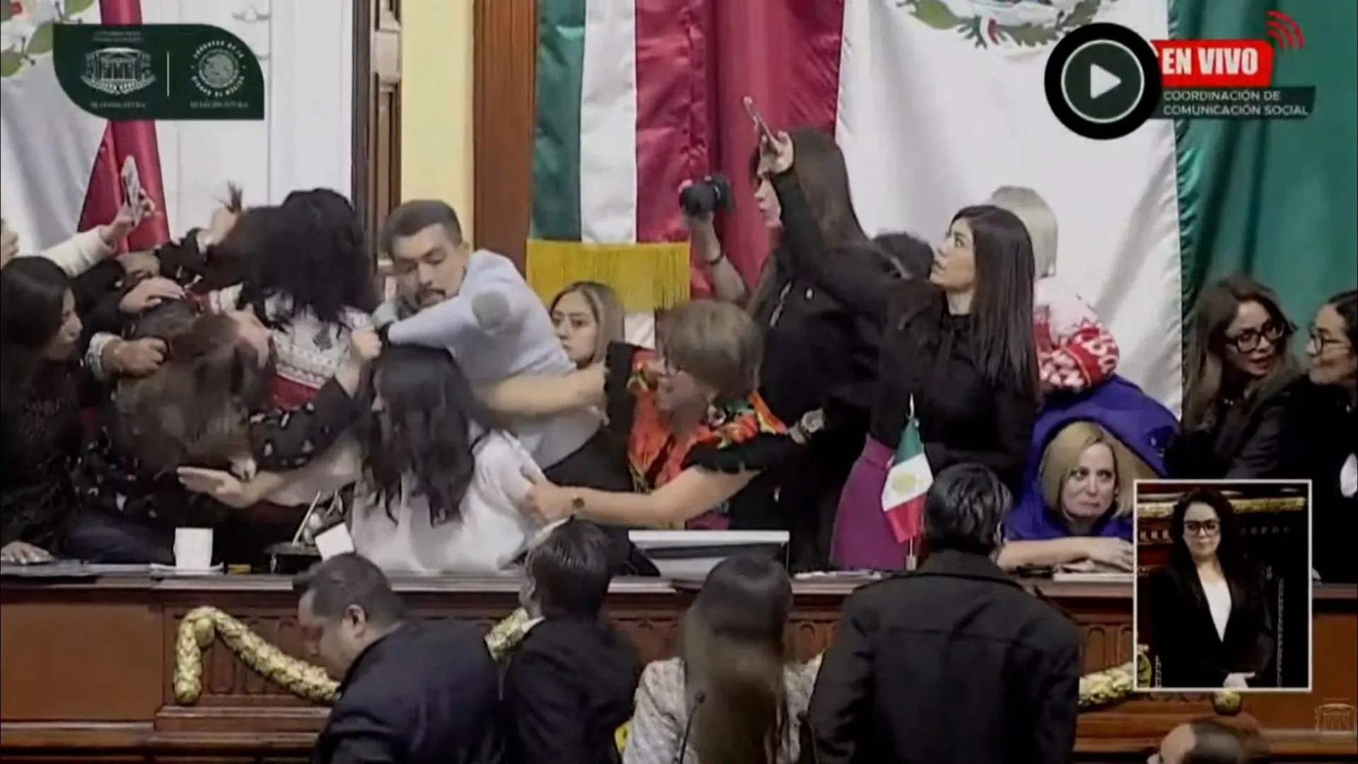 Según se ve en varios videos publicados en redes sociales, la riña entre varias diputadas, que se negaban a bajarse de la tribuna, se produjo entre empujones y tirones de cabello incluidos.